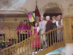 Einmarsch der beiden Gruppen. Links: Volkach Rechts: Pfaffenhofen / Ilm |