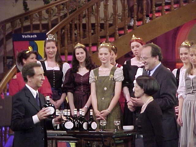 FernsehenBayern Champion: Bühnenausstattung von Koll-Saunabau Im Jahr 2000 Thema: Das Riechen von Rebsorten beim Aufguss mit Wein |