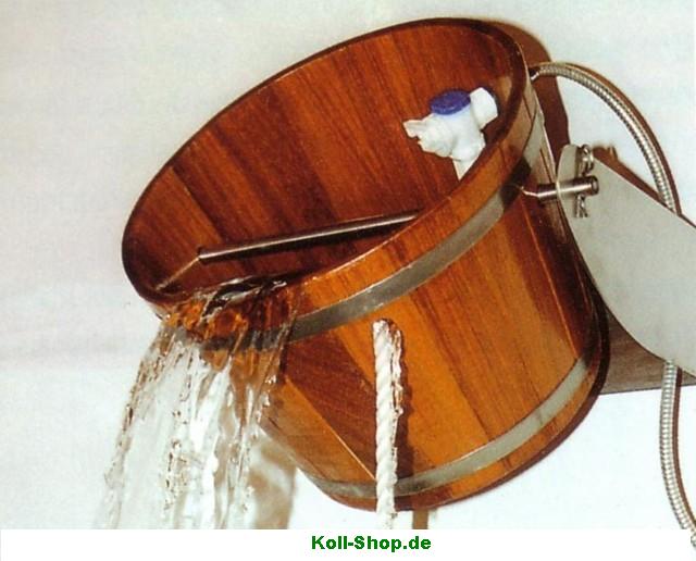 Konstruktion ohne Befestigungsschrauben im Holzeimer. Wasseranschluss an